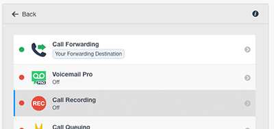 Now, every inbound call to your number will be recorded, and then once the call terminates, you'll be sent a copy of the recording.