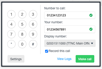 The fourth way to record your outbound calls is with our Outbound Call Recording Bolt On. This service is used to record calls when you wish to present your own non-TTNC number.