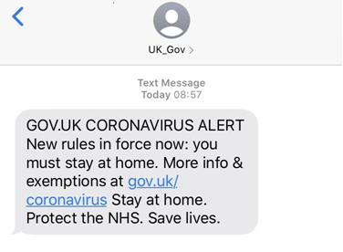 These texts messages are sent from 'UK_Gov' and look like the image below: