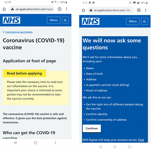 There are also reports of phishing scams relating to Covid-19 vaccinations.
